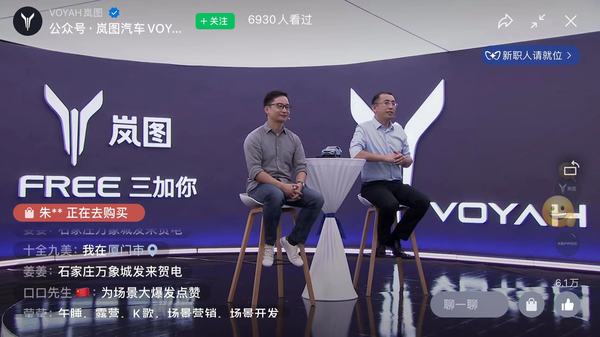 岚图汽车CEO卢放(右)、岚图汽车营销副总刘展术(左)发布会截屏