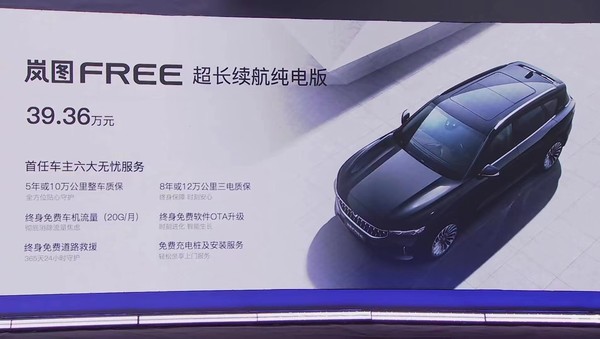 岚图FREE超长续航纯电版正式售价39。36万元 发布会截屏