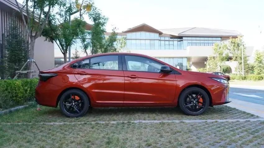 来到车身侧面,整体线条也是比较动感,而且五辐熏黑轮圈配上橙色卡钳,也是比较耐看的一种搭配。此外,在腰线处有一条由下向上的延伸,再加上尾部线条带一点下滑的设计,所以整体呈现出一副“蓄势待发”的姿态。