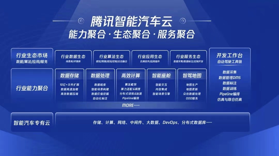 在今年6月份,腾讯升级“车云一体化”战略时,更加强调了行业数据中台的更项能力。包括数据存储、采集、标注、处理、计算等能力的聚合和加强,维度和模块也更加清晰。