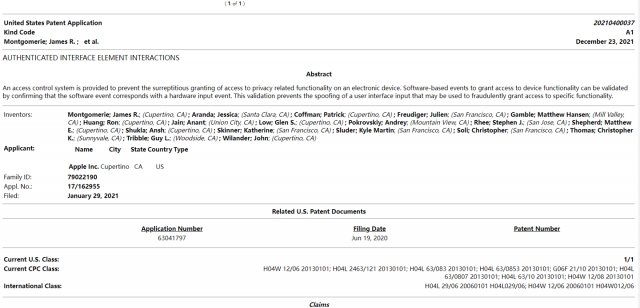 在 2021 年 1 月 29 日的“经过身份验证的界面元素交互”专利申请中,Ron Huang 被列为该特征的几位发明者之一。