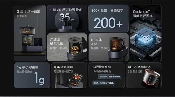 9月1日,小米推出了一款全新米家烹饪机器人产品。据悉,米家烹饪机器人支持多功能烹饪,像蒸、炒、煮这些传统厨艺统统不在话下,甚至连冰沙刨冰、打发奶油、发酵面食等也能完成,有着“1台能顶35用”之称。