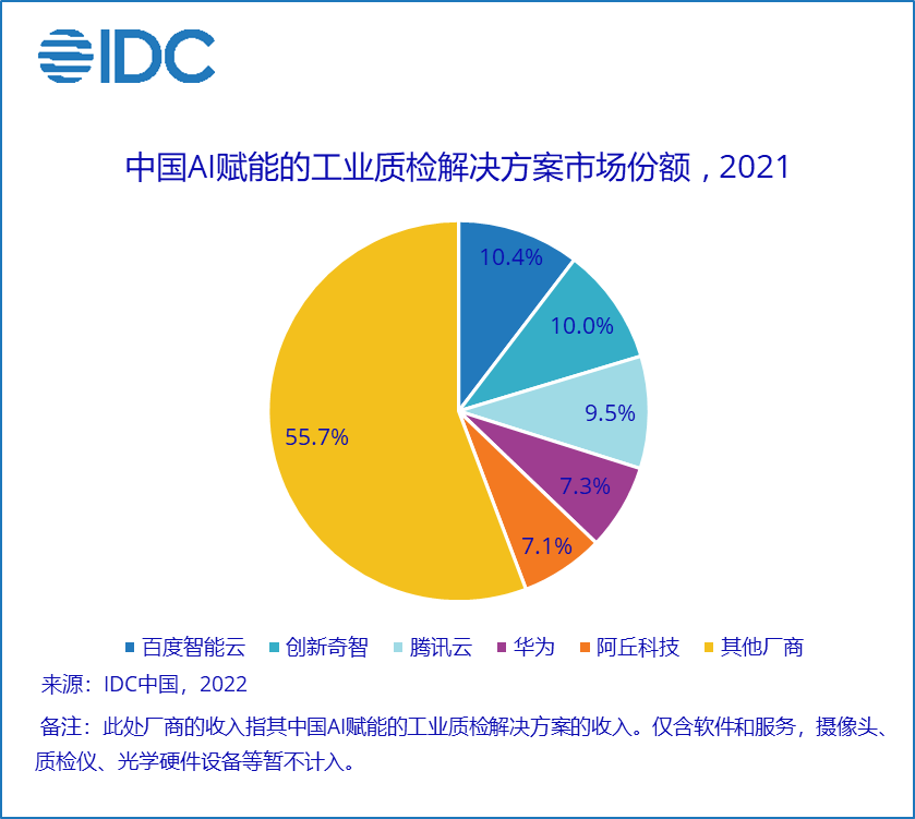 在本次研究中,IDC所定义的AI赋能的工业质检是利用基于深度学习等AI技术的视觉检测技术,在工业生产过程中,对产品图像进行视觉检测,从而帮助发现和消除缺陷。