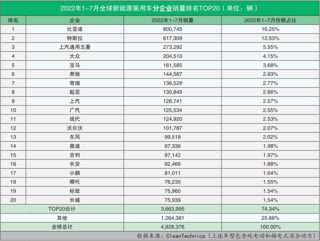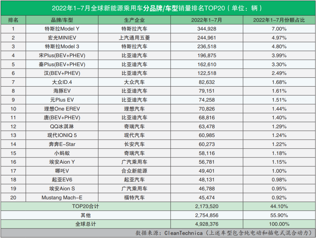原文标题!全球新能源汽车销量排名(2022年7月):疯狂的“迪王”