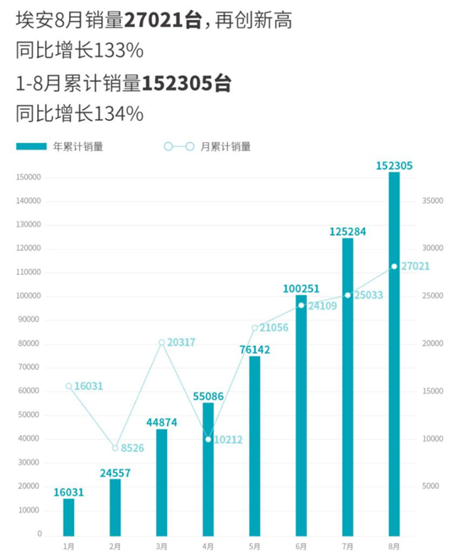 其实严格来说,广汽埃安并不算是造车新势力,它与北汽蓝谷、上汽的智己等都是传统车企冒出的“新品牌”。只是因为广汽埃安的销量表现实在是太出众,并不是在8月份才开始破2万,最早是在今年3月份就已破2万,然后5~8月均是保持住了破2万的水平。