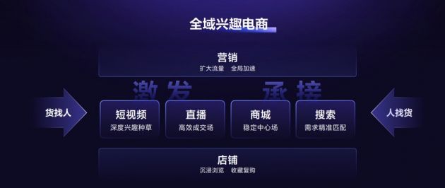 在全域兴趣电商环境中,短视频、直播等优质的内容激发用户的潜在兴趣,为用户种草;已有购物意向的用户可通过搜索、抖音商城直接下单,形成习惯,实现精准匹配和复购;用户的各类电商行为沉淀在店铺里,通过营销解决方案扩大全域流量,实现全局加速。这些场域之间形成良好协同,给用户一站式购物体验,助力商家全面长效地发展。