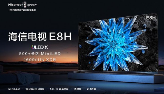 9月15日,海信推出了基于ULED X显示技术平台的MiniLED旗舰新品E8H。作为电视圈秋季新品季首个重磅新品,E8H是全行业同价位首款XDR级MiniLED电视,拥有500+背光分区、1600尼特峰值亮度、支持4K 144Hz超高刷新率和线电影级广色域覆盖,堪称2022年画质最卷电视。