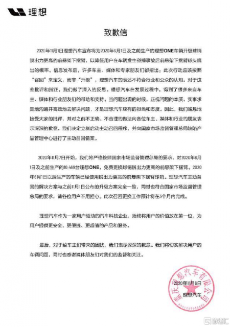 最后实在无法再搪塞,才在2021年11月份宣布车辆存在缺陷,将召回部分车辆,同时向公众发布致歉信。