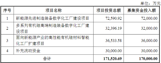 9月7日,金银河(300619)公告,公司拟定增募资不超过17亿元,用于新能源先进制造装备数字化工厂建设项目、多系列有机硅高端制造装备数字化工厂建设项目、面向新能源产业的高性能有机硅材料智能化工厂扩建项目,以及补充流动资金。