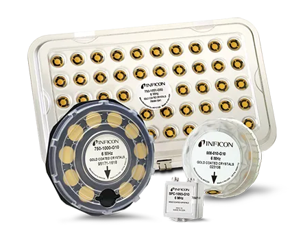 石英晶体微天平(QCM)是INFICON最重要的产品之一,用于有机发光二极管(OLED)和光学器件制造,以及许多其他应用。由于薄膜的质量负载,QCM的共振频率发生了变化,这使得它可以被用作测量衬底上薄膜厚度积累速率的替代方法。