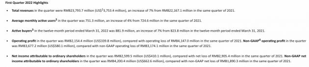 在减营销重研发的战略驱动下,平台正逐步向可持续增长的迈进。在美国通用会计准则下,本季度的经营利润为22亿元,归属于普通股股东的净利润为26亿元。