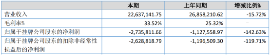 2022年上半年,公司实现营业收入2263.71万元,同比预减15.72%,变动原因是本年度本公司业务转型,减少了激光电源及激光切割机的收入;归属于挂牌公司股东的净利润-273.58万元,同比减少142.63%。