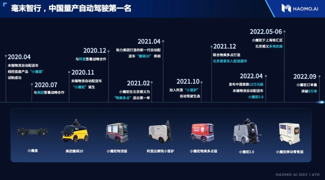 张凯之前曾透露,2022年,已有头部客户开始进行场景规模化部署的行动。随着阿里达摩院、物美多点、美团等都成为毫末的重要生态伙伴,在全面量产交付后,有理由相信,在现有数据基础上,小魔驼2。0的用户量与订单量的爆发几乎是必然事件。