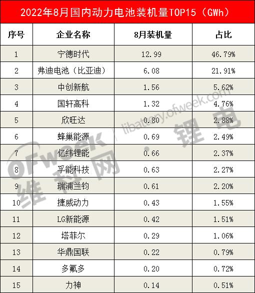 最重要的第三榜来了:8月国内动力电池企业装机量TOP15。