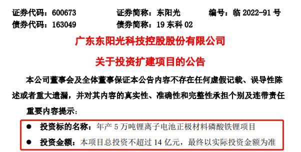 东阳光称,本次投资项目符合国家产业发展规划及公司新能源战略发展方向,具有良好的发展前景和市场空间。本项目实施投产后,可实现对现有产能的有效补充,有利于提升产品规模优势,进一步提升行业地位,有效提高公司长期核心竞争力与持续盈利能力。