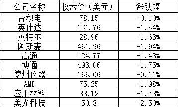 美股中的主要芯片股表现如下: