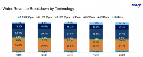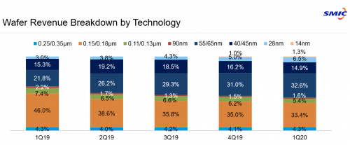 在2020年第一季度的财报中,中芯国际明确给出了14nm、28nm等工艺的具体营收占比。