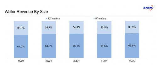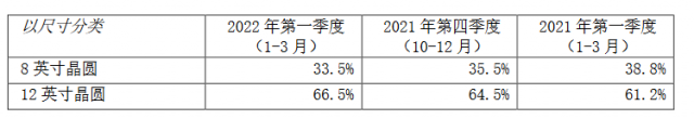 而在本次的2022年第一季度财报中,晶圆收入分析的统计方式变为了晶圆尺寸分类。