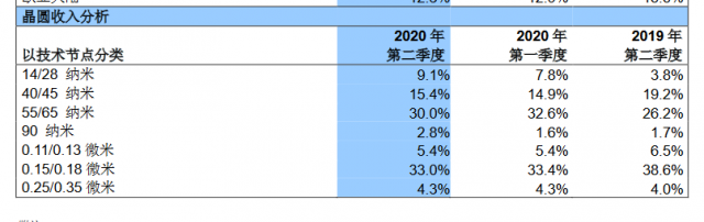 而在2020年的第二季度财报中,中芯国际在财报中不再给出独立的14nm营收占比数据。而是将先进逻辑技术中的14nm和成熟逻辑技术28nm组成了一个新的统计项目,最终只在财报中给出了14/28 纳米融合在一起的营收占比数据。