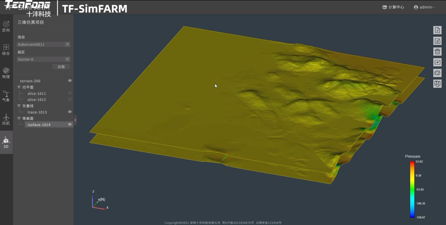 l 风资源仿真云平台TF-SimFARM:TF-SimFARM针对风资源评估软件精准评估难、协同易用性低的两大行业痛点而推出。基于自主可控CFD核心求解器,该软件拥有丰富湍流模型,可更精准模拟复杂风场;多种尾流模型几乎涵盖各类风场与风机阵列尾流效应;B/S架构云平台助力实现软件简易部署与维护;云端HPC调用超算资源实现大风场高效仿真计算;B/S模式下的三维可视化拥有矢量线动画播放等更丰富互动方式。