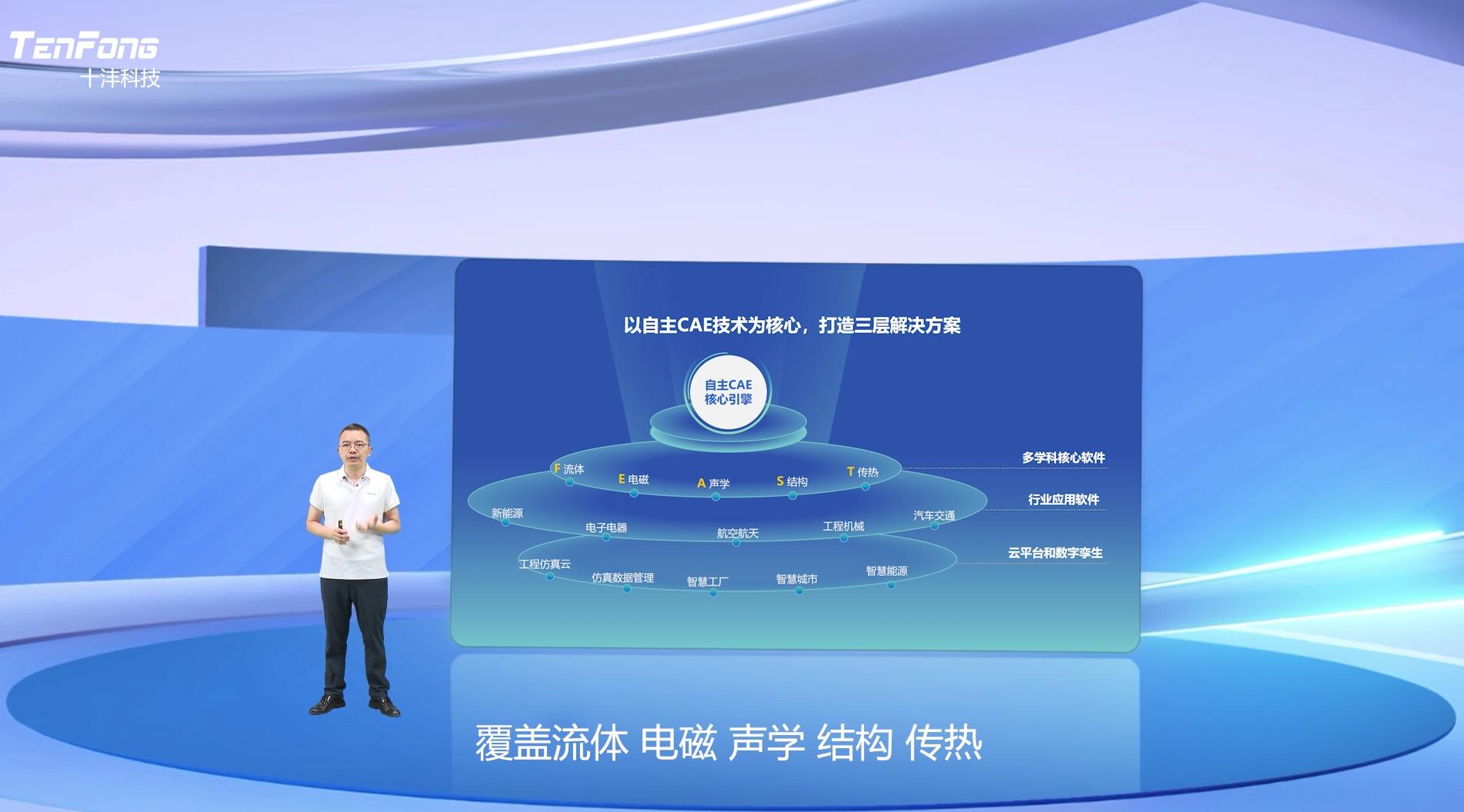 此次十沣科技发布产品涵盖流体、固体、无网格法、行业解决方案、数智平台五大类别,适用于航空航天、船舶海工、汽车交通、电子电器、新能源等众多领域。除产品介绍,发布会还带来了软件产品功能演示和多位行业用户声音,全方位展示了自主工业仿真软件企业在核心技术、产品体系、行业应用拓展等方面竞争力的快速提升。