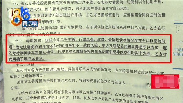 而据双方购买协议可知,其中第十一条明确说明:因该车系二于车辆,行驶里程、维修、保险记录等情况存在无法核查的问题,故无法避免存在甲方不知情的与事实不一致的风险,甲方及经纪公司将此隐患予以告知。