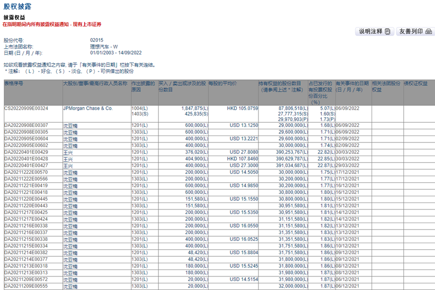 沈亚楠从去年12月6日开始,已经多次抛售理想汽车港股股票,持股数量从3200万股下降至现在的2900万股。