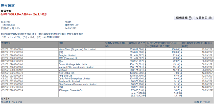注:理想汽车增减持情况