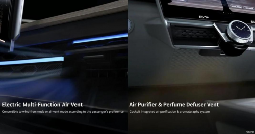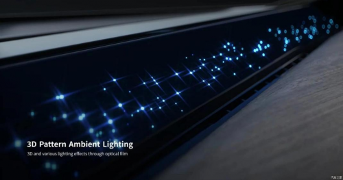 电动多功能出风口的设计采用隐藏式,并配备了空气净化器,气流更为安静,可在调节温度的同时,提供无风环境。车内还使用了众多照明饰板,已提供3D光效。