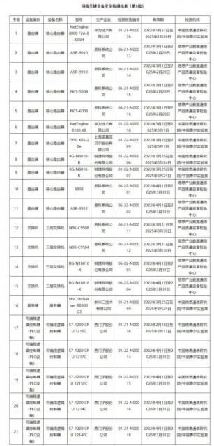 5 月 2 日消息,据工信部发布,根据《中华人民共和国网络安全法》《关于统一发布网络关键设备和网络安全专用产品安全认证和安全检测结果的公告》(国家互联网信息办公室、工业和信息化部、公安部、国家认证认可监督管理委员会公告 2022 年第 1 号)《关于发布承担网络关键设备和网络安全专用产品安全认证和安全检测任务机构名录(第一批)的公告》(国家认监委、工业和信息化部、公安部、国家互联网信息办公室公告 2018 年第 12 号),现将由具备资格的机构按照《网络关键设备安全通用要求》(GB40050-2021)强制性国家标准,经安全检测符合要求的网络关键设备(第 5 批)予以公布。