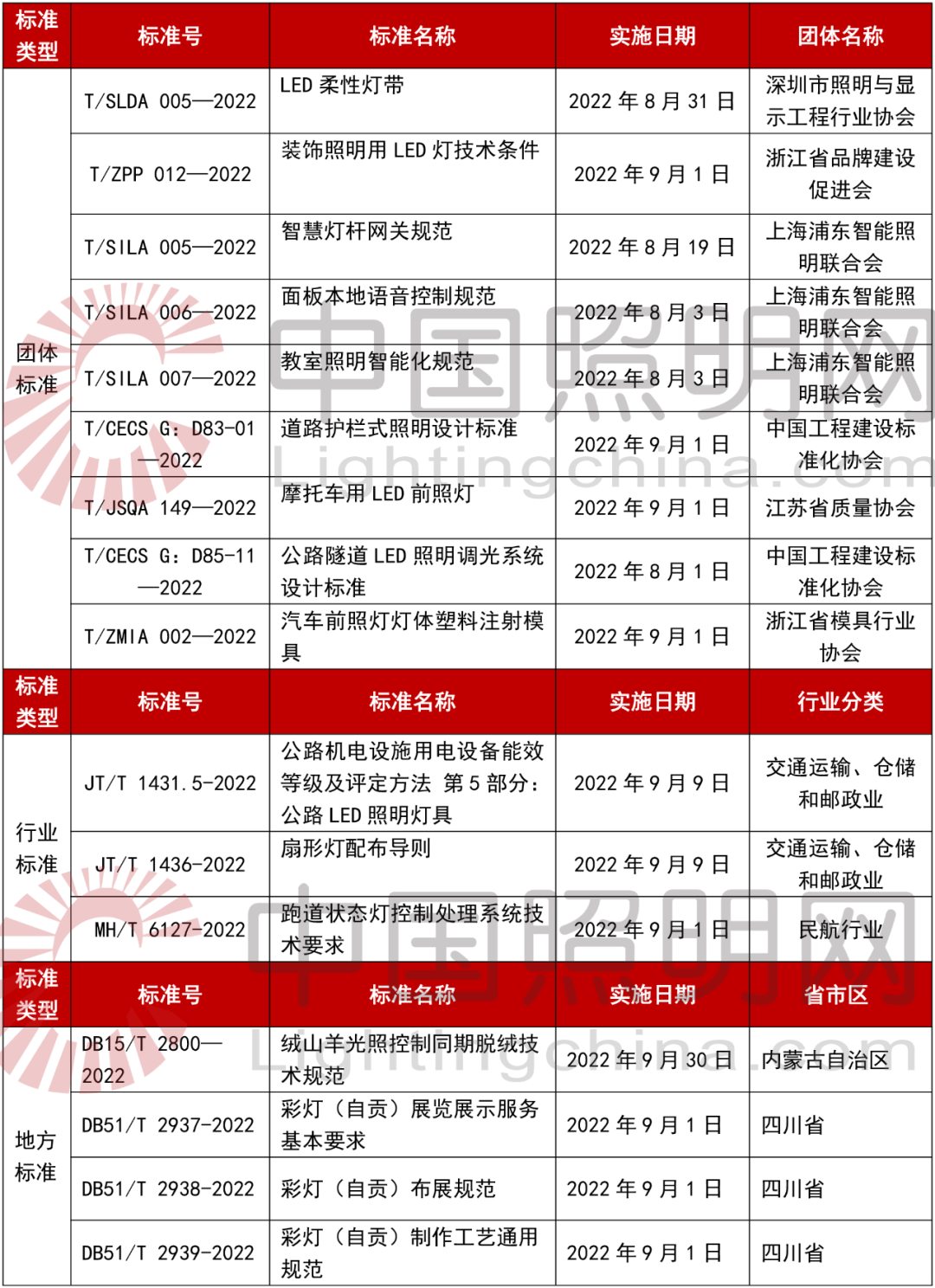 近日,中照网查询,又有16项照明相关标准正式实施。涵盖行业标准、地方标准和团体标准,涉及教室照明、智能照明、智慧灯杆、车用照明等领域,对规范相关领域的产品生产和实际应用具有指导作用。