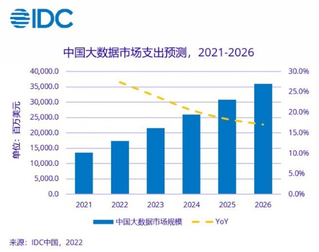 中国市场,IDC预计,2026年中国大数据IT支出规模预计为359。5亿美元,市场规模位列单体国家第二。