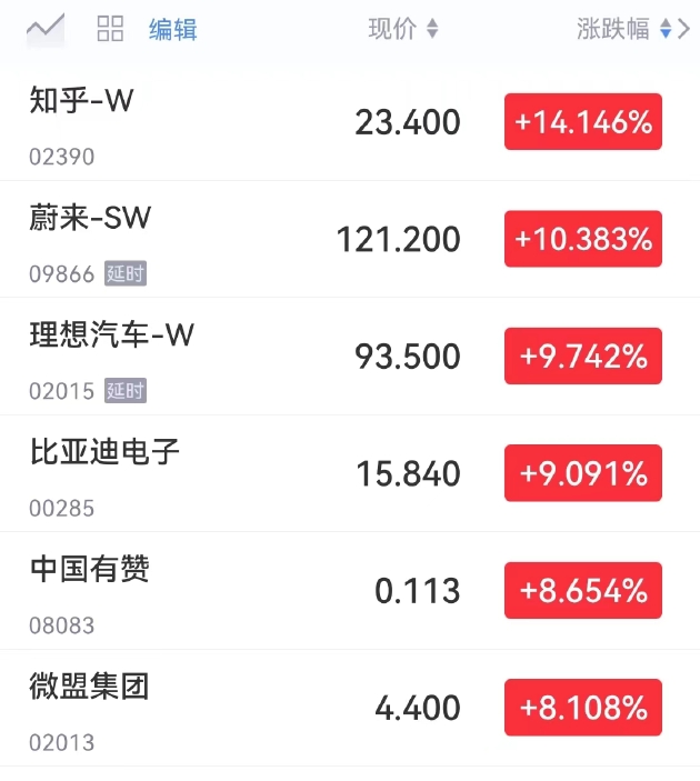 5月17日下午消息,香港恒生指数收盘涨3。27%,恒生科技指数涨5。78%。知乎涨超14%,蔚来涨超10%,理想汽车、比亚迪电子涨超9%,有赞、微盟涨超8%,京东涨超7%。