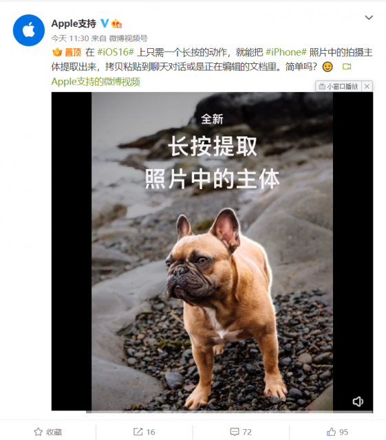 其中看图查询是一个有趣的功能,苹果 @Apple 支持 也带来了相关教程,在 iOS16 上只需一个长按的动作,就能把 iPhone 照片中的拍摄主体提取出来,拷贝粘贴到聊天对话或是正在编辑的文档里。