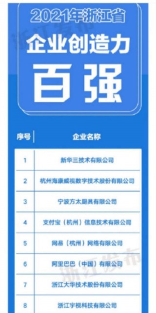 4月29日消息,近日,浙江省知识产权研究会发布了浙江省创造力百强企业榜单,阿里、网易、支付宝(杭州)等公司上榜。