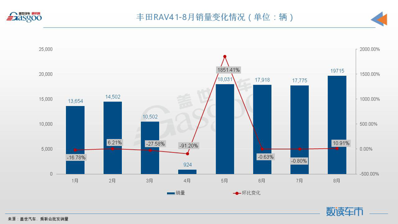 一句话点评:好口碑决定了市场下限,正常月份,接近2万辆的销量已经是RAV4的市场基本盘。