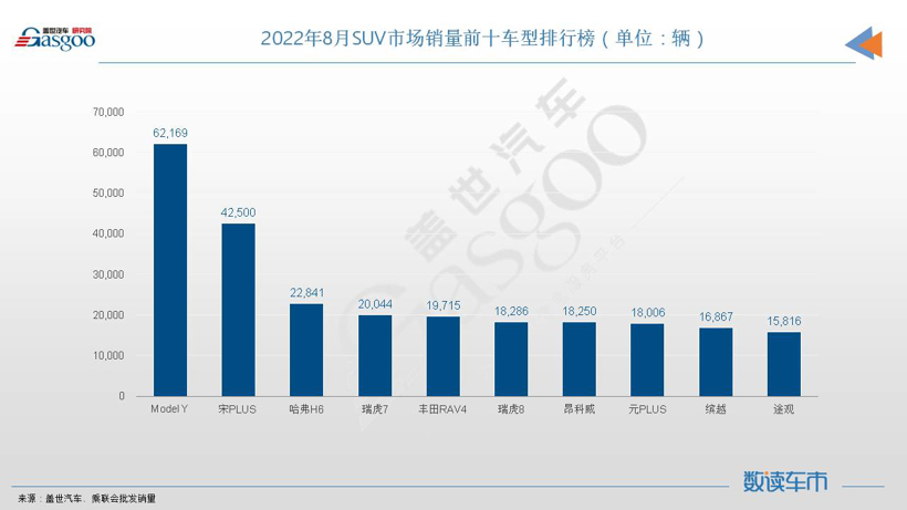 虽然没能继续领跑国内SUV市场,但宋PLUS创纪录的表现依旧在延续,8月宋PLUS月销量首次突破了4万辆大关,拿下SUV市场月度销量亚军毫无悬念。宋PLUS和特斯拉Model Y是8月仅有的两款销量超过3万辆的SUV车型。