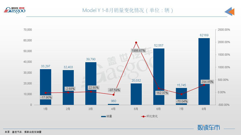 一款车交出超过6万辆的月销量,在国内SUV市场上已经是多年未见过的恐怖数据了,这也是Model Y国产以来交出的历史新高,较之去年8月同比增长了261%,环比今年7月,增幅更是高达295%。