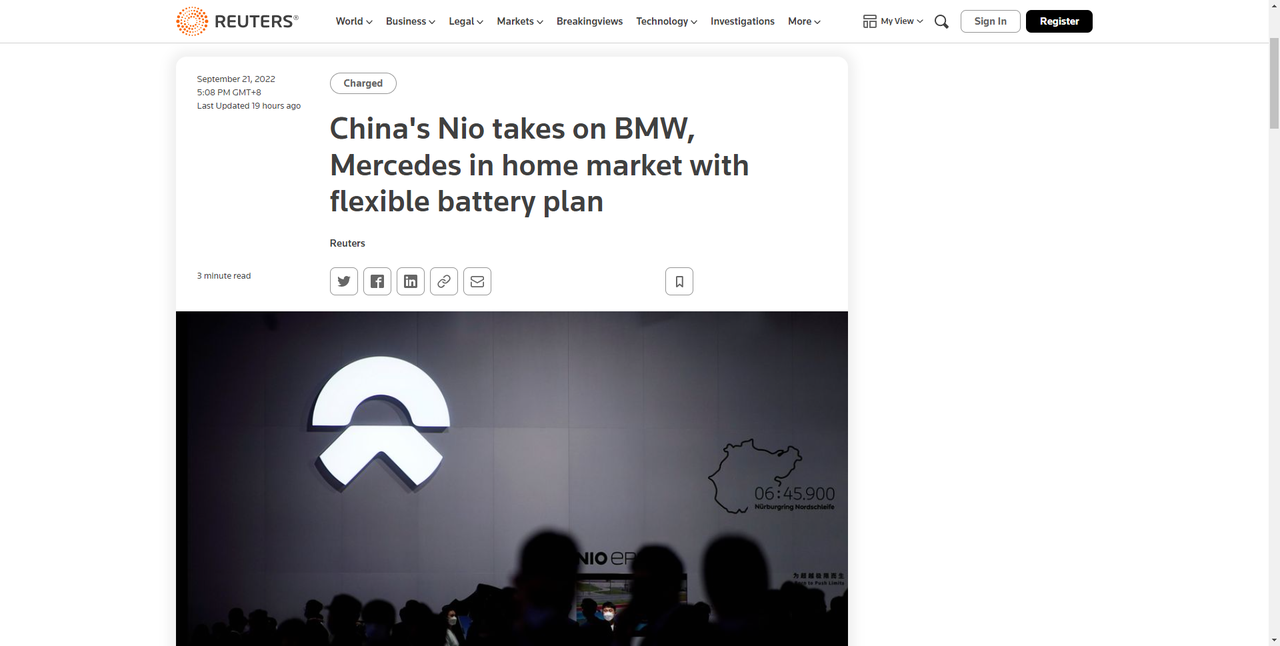 自2021年5月6日发布挪威战略,蔚来正式通过挪威进入欧洲市场。2021年9月,蔚来在挪威首都奥斯陆开设欧洲第一家蔚来中心,今年1月挪威换电站正式投运,这是蔚来全体系进入海外市场的第一步。