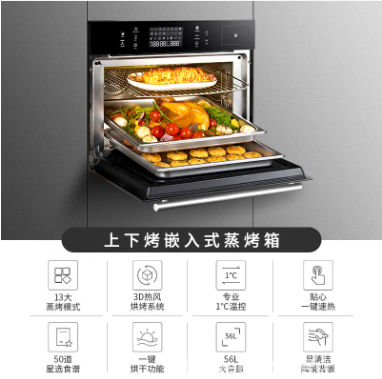 在烹饪过程中,蒸烤箱内部的温度是最为重要的参数,另一个重要的参数是蒸烤箱内部的空气湿度。通过实时对蒸烤箱内膛的湿度进行检测,湿度检测数值准确,将该数值充分的应用到食物的蒸烤过程中,可以很好的保证食物口感最佳,营养价值高。食材在烤箱中烹饪过程中,对烤腔体内的湿度有一定的要求,甚至烹饪效果受湿度的影响很大,在湿度不符合要求时烹饪效果差强人意。