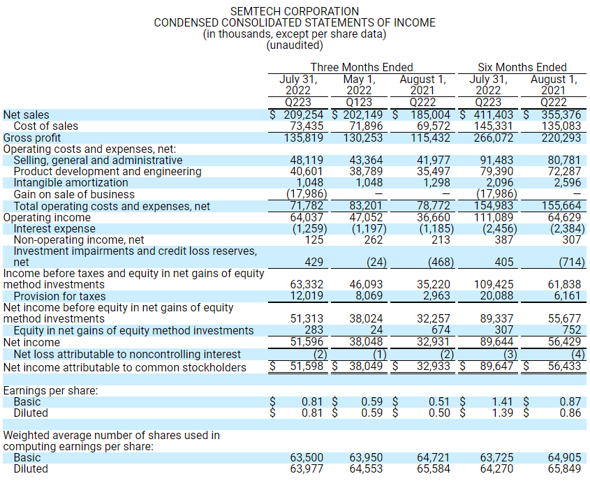 8月31日,全球领先的高性能模拟和混合信号半导体供应商Semtech公布了截至2022年7月31日的2023财年二季度财报。