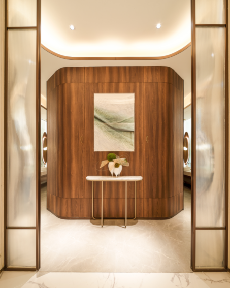 项目洗手间入口设计洋溢艺术感,初看都以为是vip室。通过环环相扣的愉悦,擘画触达灵魂的理想生活。产品以可持续创新亮点,率先于长隆-万博商圈(广州打造的五个具有全球影响力和美誉度的标志性商圈之一)构建“湾区愉悦地标”,引领全新生活方式。