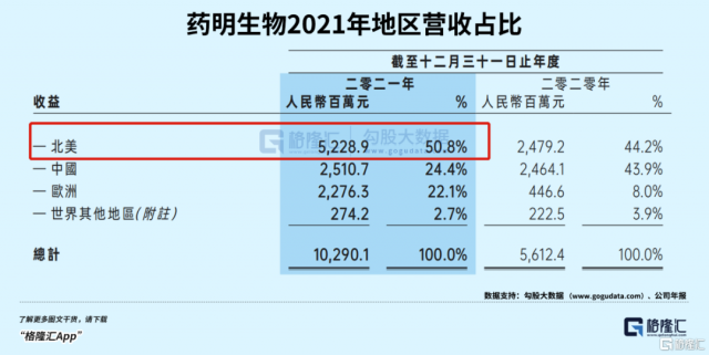 以药明生物为例,2021年北美(美国为主)营收占据50。8%。