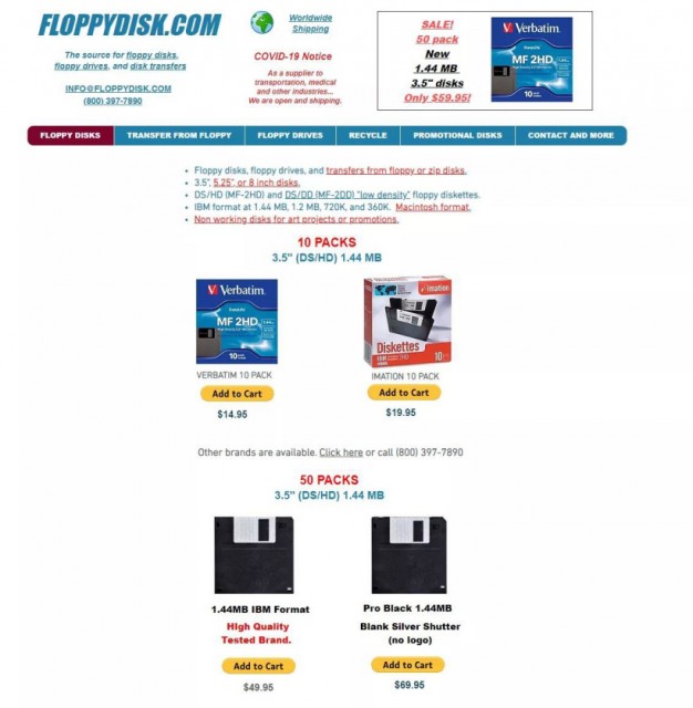 Persky 还说,医疗部门也仍然在使用软盘,还有一些“爱好者”也会偶尔向该网站购置数十张软盘。