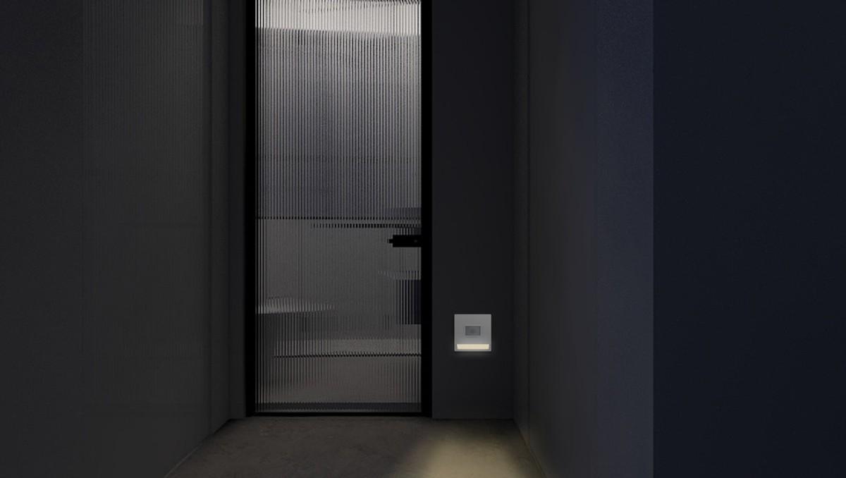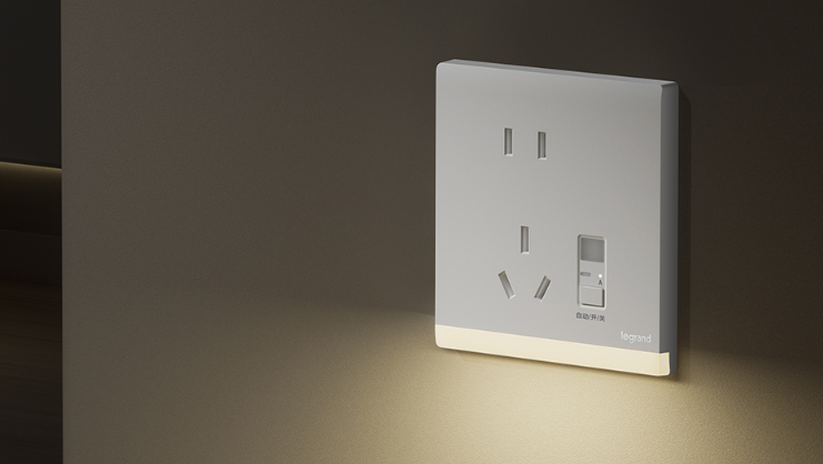 玄关处宽敞的户型,可以在角落设置2个五孔插座,方便扫地机器人、吸尘器等设备充电使用。需要地脚灯的住户可以选择五孔感应地脚灯,一位多用,进门照亮指示,平时也可以给设备充电。