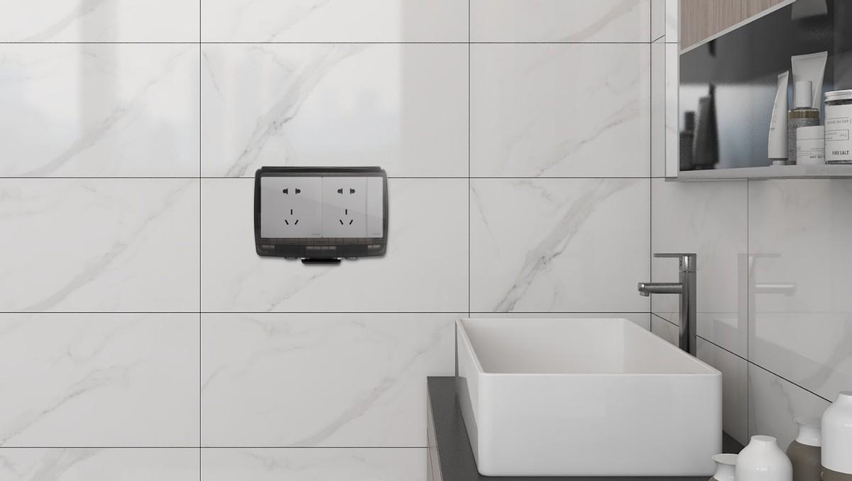 连体安装1~2个五孔插座和1个五孔带开关插座,可用于电动牙刷、吹风机、电动剃须刀等设备,插座加装防水盒用电更安全。