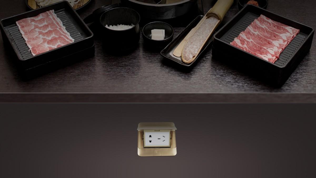 尽可能保证餐厅周围每一个墙面都预留有插座电源,以满足在餐厅区域的用电需求。若有喜好火锅的家庭,还可以在餐桌底设置1个地插给电磁炉使用。