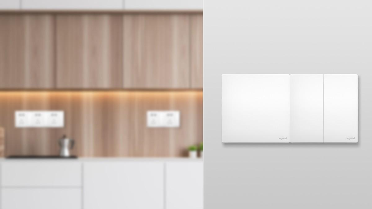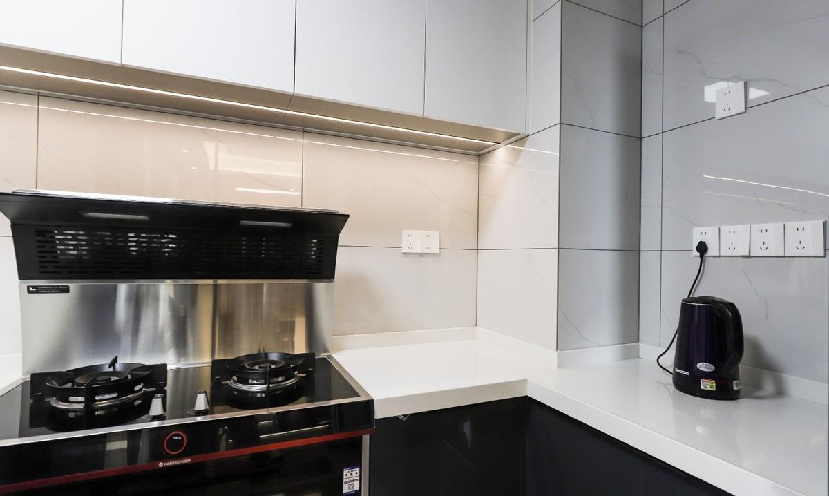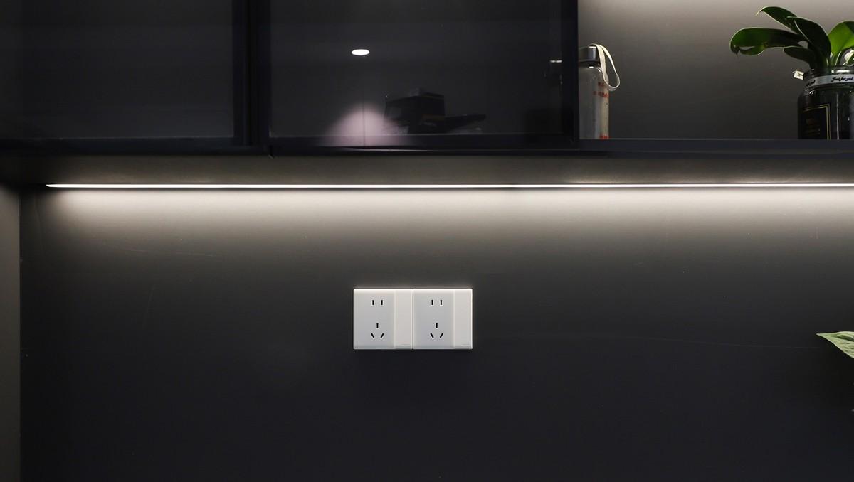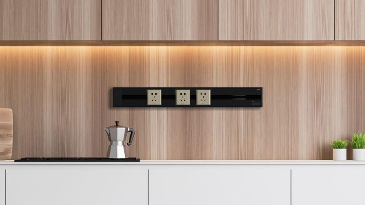 橱柜台面上方还可以选择安装轨道插座,无需重新布线,安装方便、使用灵活,按实际用电需求增加模块,满足多个电器同时使用的需求。