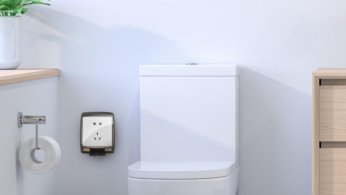 马桶旁边可以设置1~2个五孔插座给智能马桶盖或电热毛巾架使用,一般安装于远离淋浴的马桶侧边,且一定要加装防水盒。
