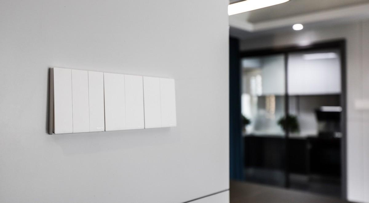当下流行的无主灯设计涉及的灯具较多,线路设计比较复杂,灯具都是需要分开控制的。多个多位开关连体安装在走廊过道,1~2个双控开关与1~2个单控开关组合控制客厅、过道及部分餐厅的灯光。